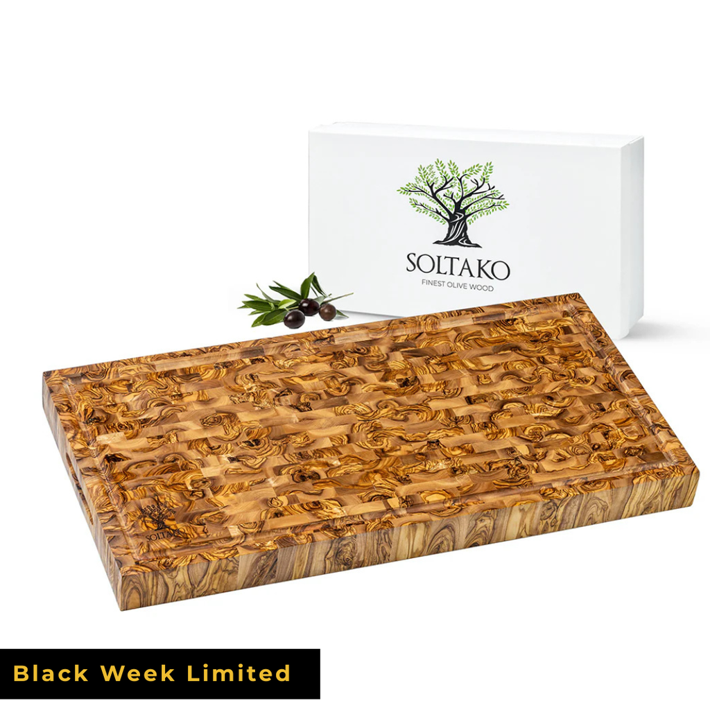 Dieses massive 8 kg schwere Olivenholzbrett sieht durch sein schönes Farbenspiel nicht nur edel aus, sondern weist auch beste Eigenschaften als Schneidebrett und Hackbrett auf.